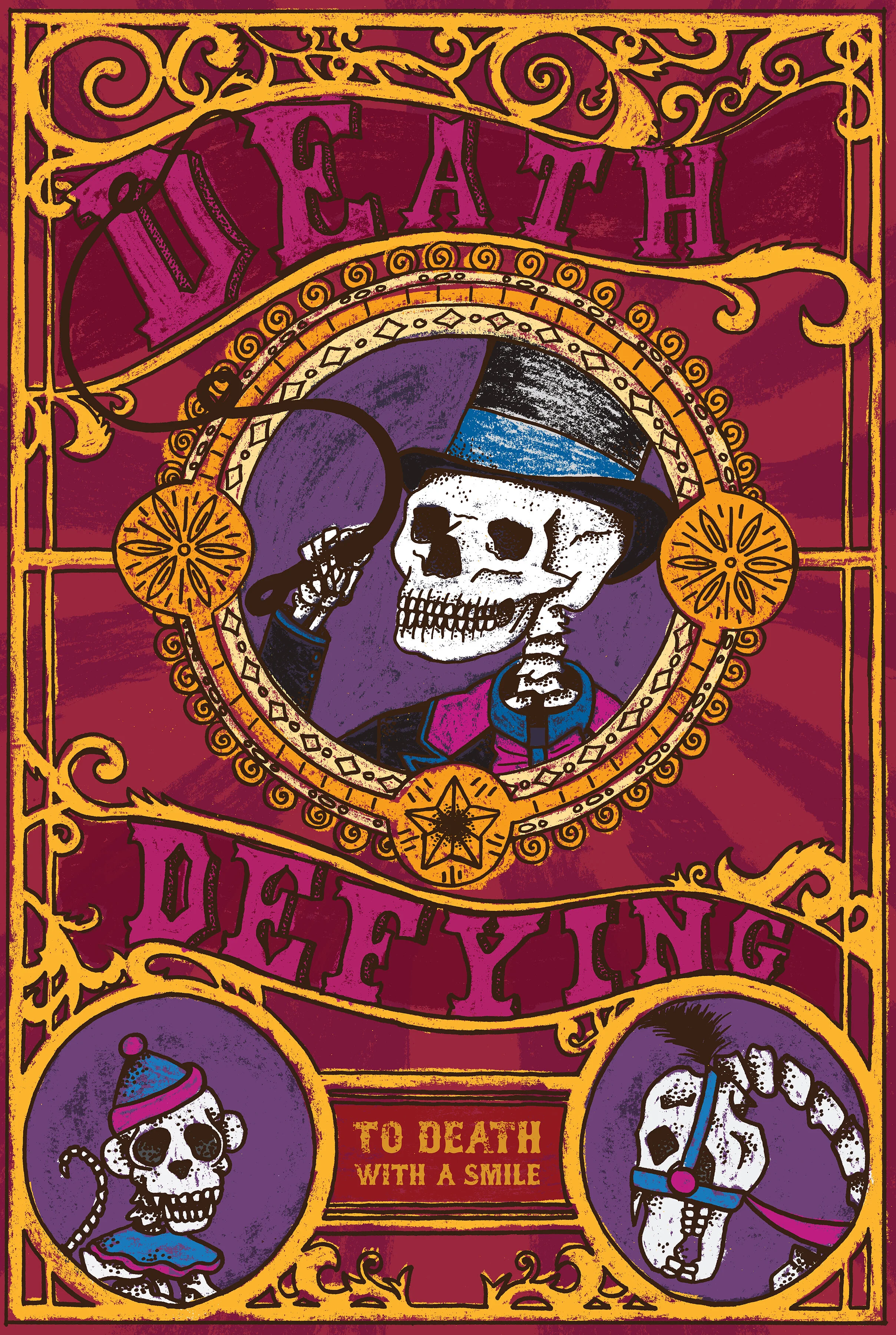 The ringmaster of a circus controls the whole show, creating excitement and wonder under the big top...even after death. This entry for the Mexican Museum of Design’s 2019 international poster competition - To Death With a Smile - invites participants to examine death from a personal, cultural or emotional perspective in a celebratory visual that overcomes negative and fearful connotations. After extensive research exploring turn-of-the-century prints, this illustration incorporates the style and textures of a vintage circus aesthetic. The death-defying poster was named one of three hundred finalists out of over five thousand international entries.